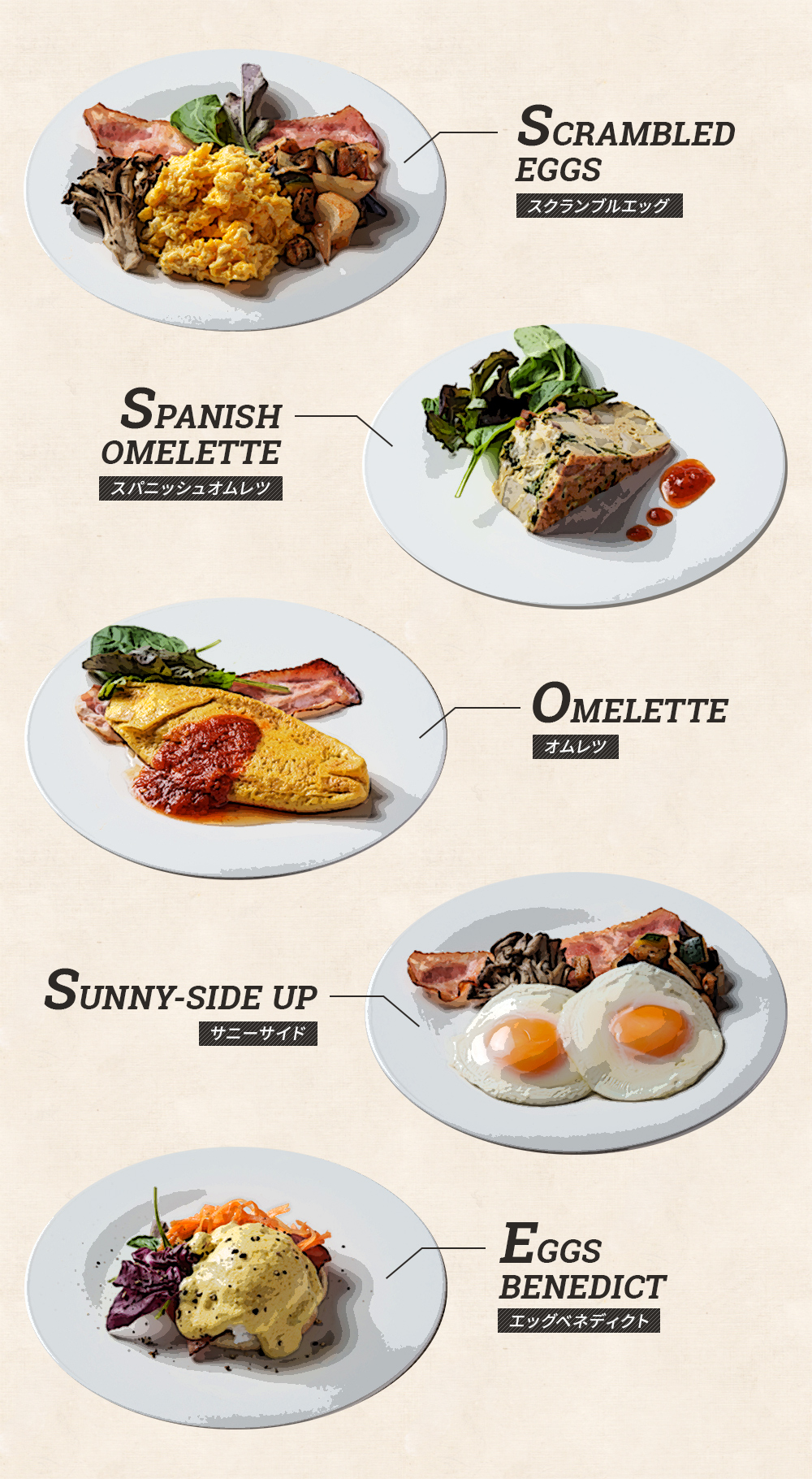 에그 베네딕트, 오믈렛 등 정통 달걀 요리에 리조또, 파스타와 같은 양식 메뉴를 더한 두 가지 플레이트 중 메인 디쉬를 선택하실 수 있습니다.
